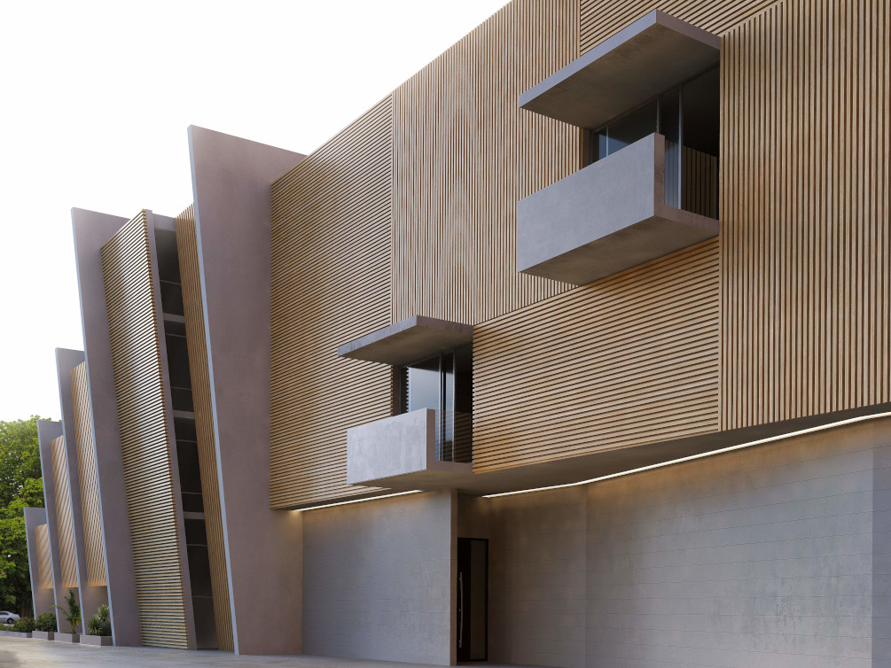 Experience Italian craftsmanship with ForMe Design Wood Grain Aluminum SKIN CLADDING and BATTENS, made from 100% extruded aluminum. Cladding and battens are manufactured by ForMe Design of the DVF Group – a global leader in producing, designing, and distributing aluminum extrusions with world-class powder coating and woodgrain solutions.